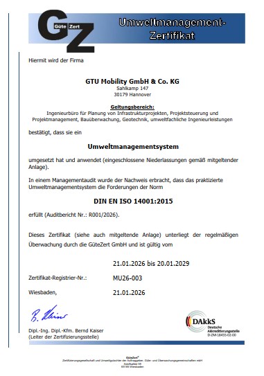 Umweltmanagement Zertifikat DIN EN ISO 14001:2015 GTU Mobility